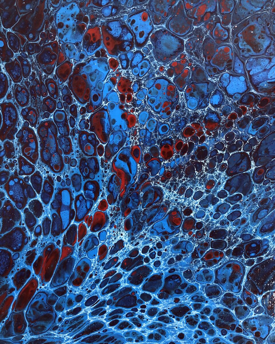 XL Fluid Art with structure and fluorescent paint. Acryl on canvas, double layer Varnish.